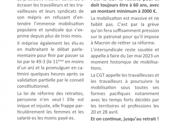 ON CONTINUE LA LUTTE POUR LES RETRAITES, LES SALAIRES, LES CONDITIONS DE TRAVAIL, LES SERVICES PUBLICS